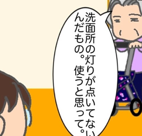 続きを読む一つ屋根の下で義母と同居しているまる子さん。嫁姑問題や介護の話をメインに自身の体験をマンガにしています。 夜、リビングにやってきた義母。洗面所を使いたいらしく、一度洗面所の様子を確...